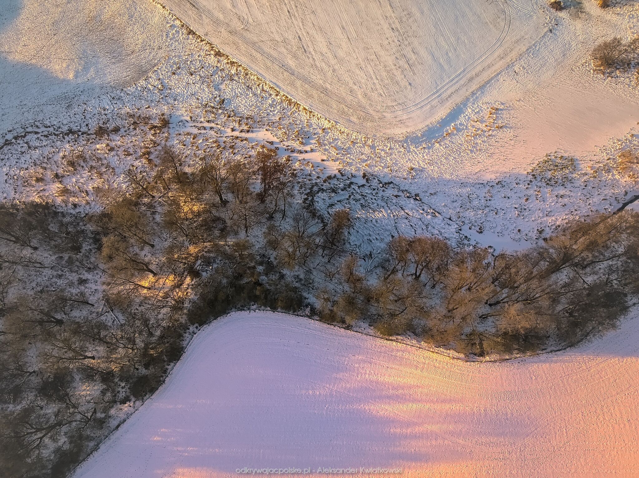 Chciałbym szron, odpowiednie chmury i... odpowiednie miejsce. Miejsce było dobre ale mógłbym trochę lepiej wykorzystać teren. Z góry widać las w kształcie kwadratu, który psuje chaotyczny i dziki styl terenów w pobliżu rzeki.